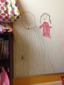 I’d never compare my self to Jesus or even esteem myself in the same league, but you have to admit, there appears to be a biblical reference here. Mary Magdalene? Perhaps. My middle name is Maria. Interestingly enough, my daughter didn’t give me any feet at all. AND, I also have only one hand in her drawing.