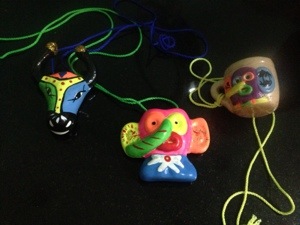 We overcrowded a large chiva bus that drove us around town blasting music. There was dancing in the aisles, and much cheering each other on as we, unsanitarily, gulped whiskey from a bottle we passed around; several bottles, actually. We wore printed straw party hats and colorful thematic necklaces with traditional Colombian designs—elephant masks & bull heads.